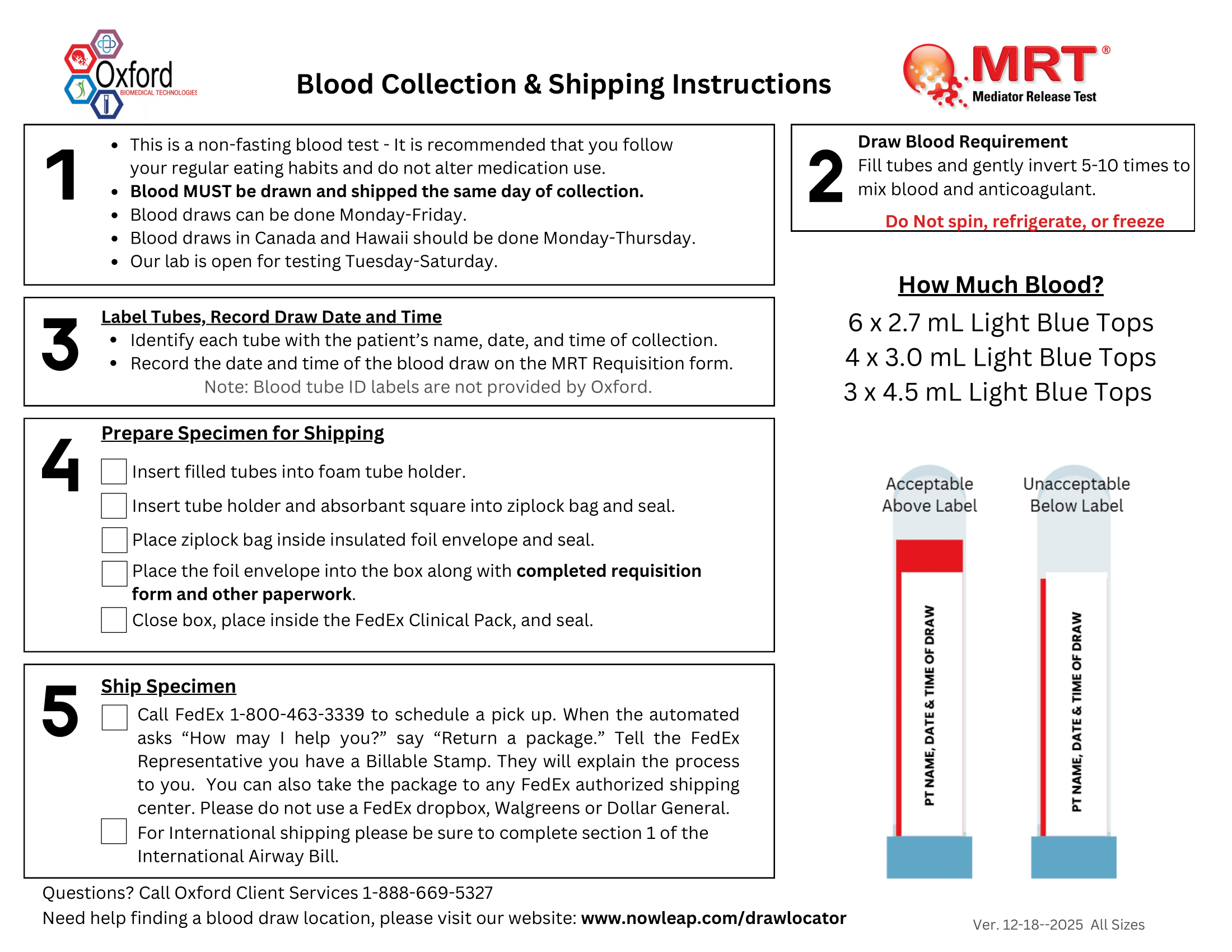 Each draw kit will contain the appropriate number of tubes and will also have specific collection instructions included in each draw kit based on the volume of tubes within each draw kit.
